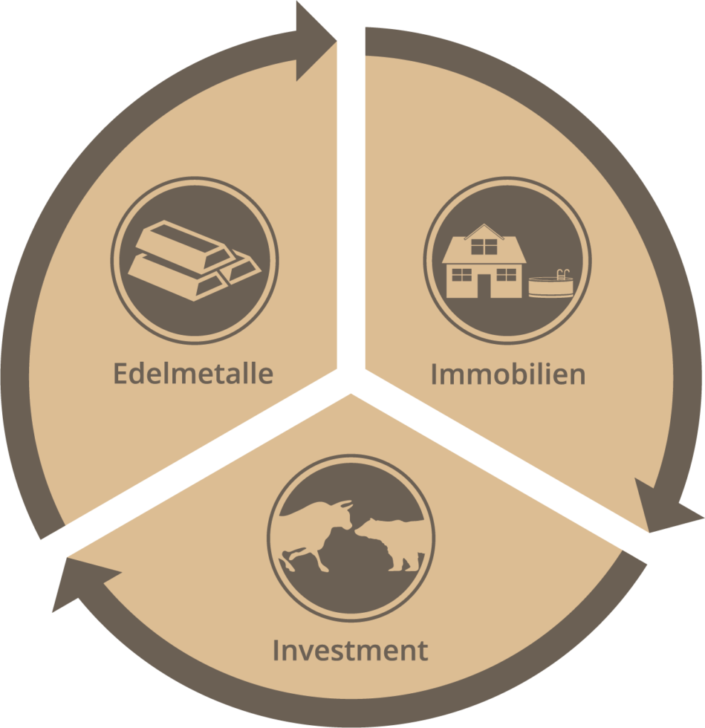 Da kommt unser FinanzPlan B ins Spiel. Er funktioniert nicht über Sparen, sondern über Investieren. Anders gesagt: Er setzt nicht auf die oben genannten Geldwerte, sondern auf Sachwerte. Das sind reelle Werte, die auf etwas faktisch Vorhandenem basieren. Das können Immobilien sein, Edelmetalle wie Gold oder Silber, Edelsteine oder auch Unternehmen oder Photovoltaikanlagen. Neben den direkten Investitionen in diese Sachwerte gibt es auch indirekte, beispielsweise über Investmentfonds, die auf Sachwerten basieren. Zwei Sachen sind all diesen realen Werten gemeinsam: Sie sind beständig, und sie gehören Ihnen, wenn Sie sie kaufen.